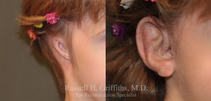 Olivia was born with bilateral grade 3 microtia and aural atresia. Each ear and ear canal was reconstructed in a single stage utilizing a Medpor framework (CAM). Her left ear was reconstructed first and her right ear was done 4 months later. Both surgeries were completed under a single year insurance deductible. The photos on the right were taken over one year postoperatively. This gal is an incredible comedian. She had us laughing every time she came into our office. We predict that she will be on the Jimmy Fallon show someday. CLICK PHOTO TO ENLARGE